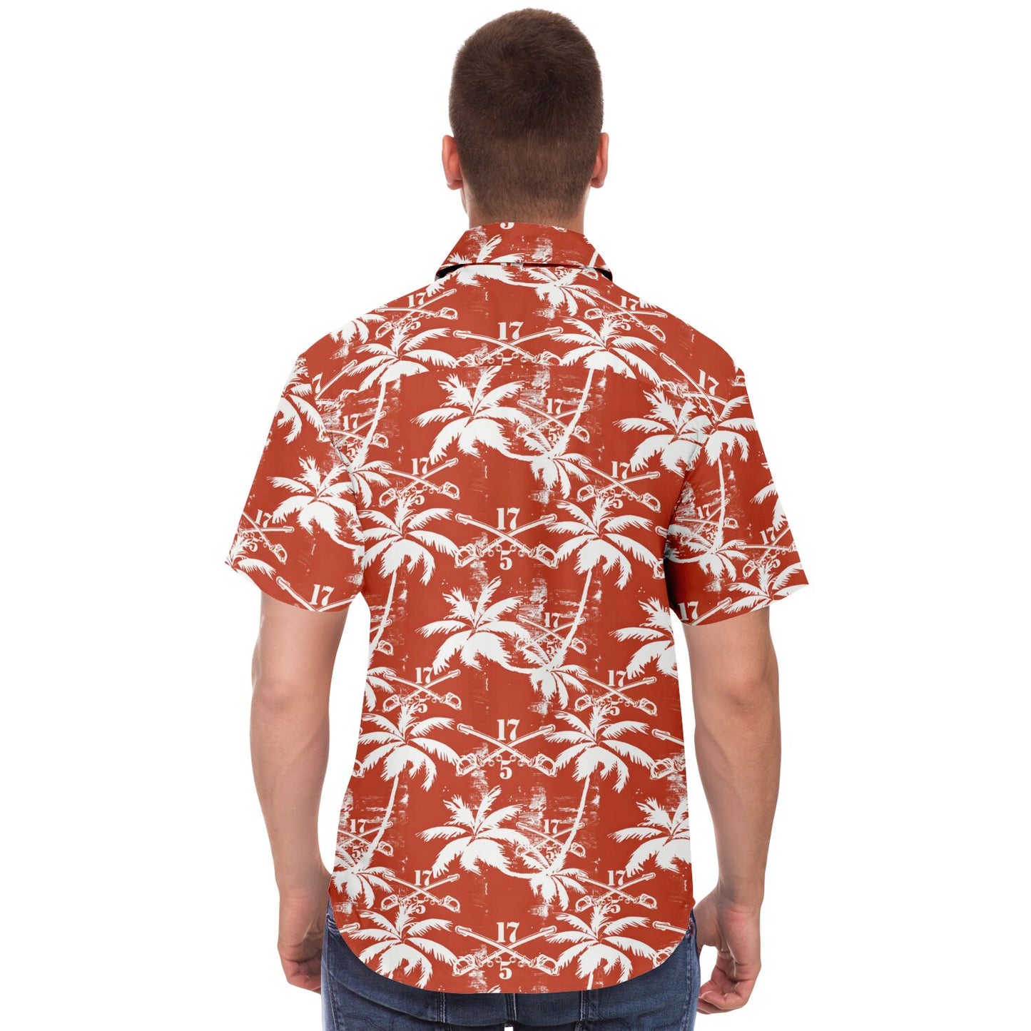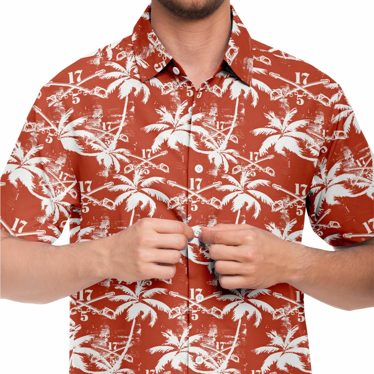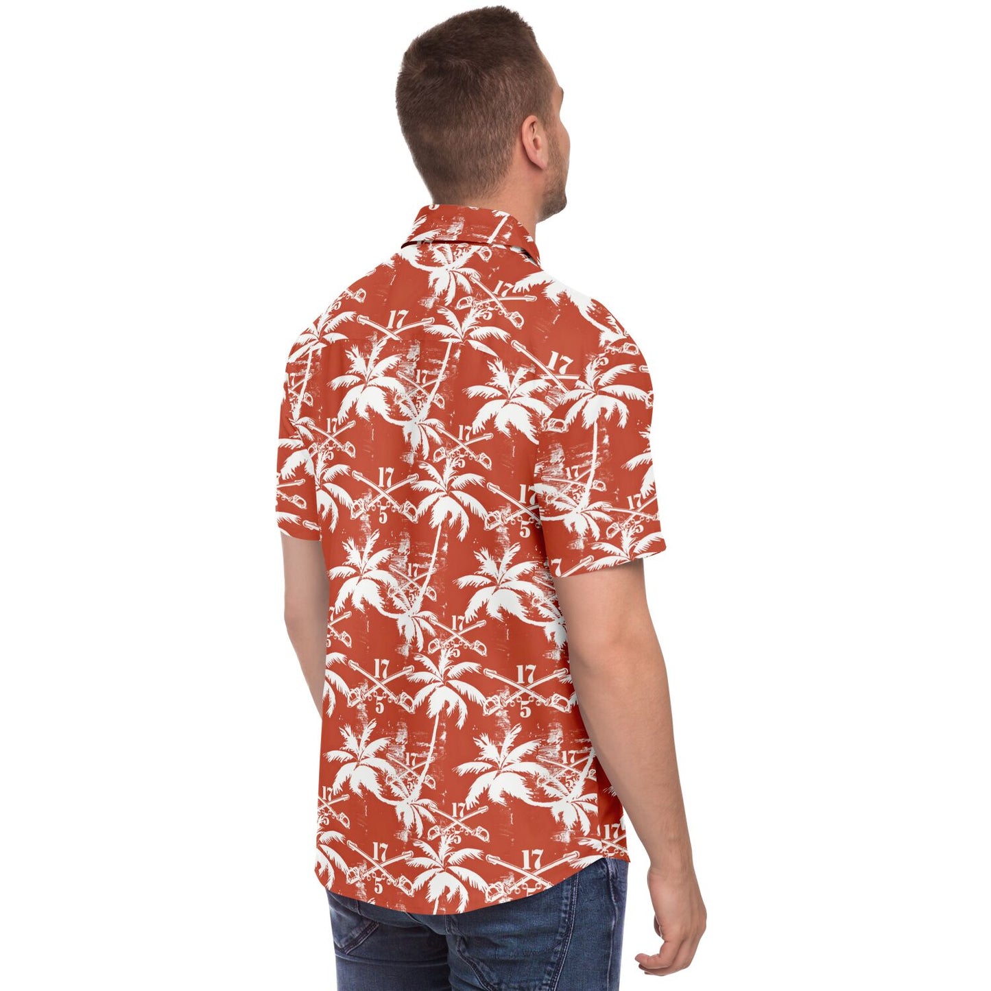 This shirt isn’t just an outfit; it’s a statement. Perfect for blending in with the flora while standing out among the ranks, the "Sabers & Palms" Hawaiian Shirt is your go-to gear for off-duty adventures. Show the world that the 5-17 Air Cavalry Squadron knows how to relax with the best of them—armed with aloha and ready for anything!