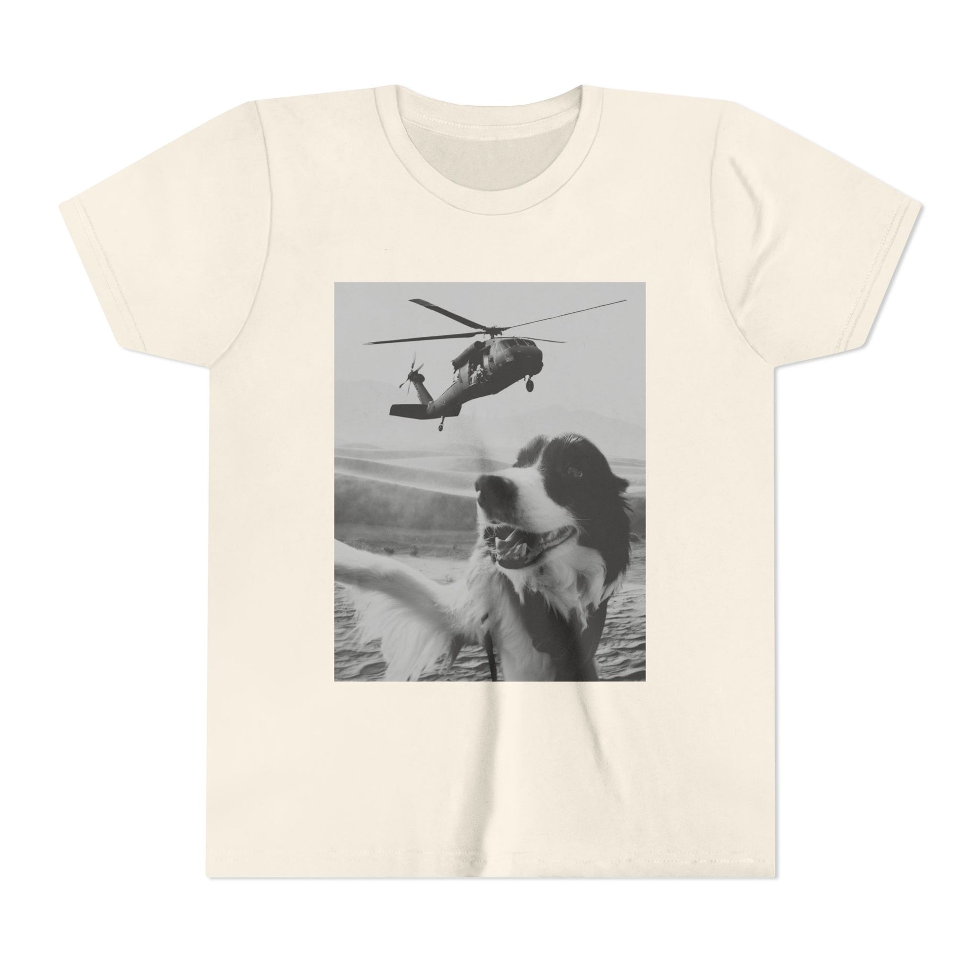 Blackhawk Desert Selfie Youth Short Sleeve Dog Lover Tee, Helicopter Graphic Shirt, Animal T-Shirt