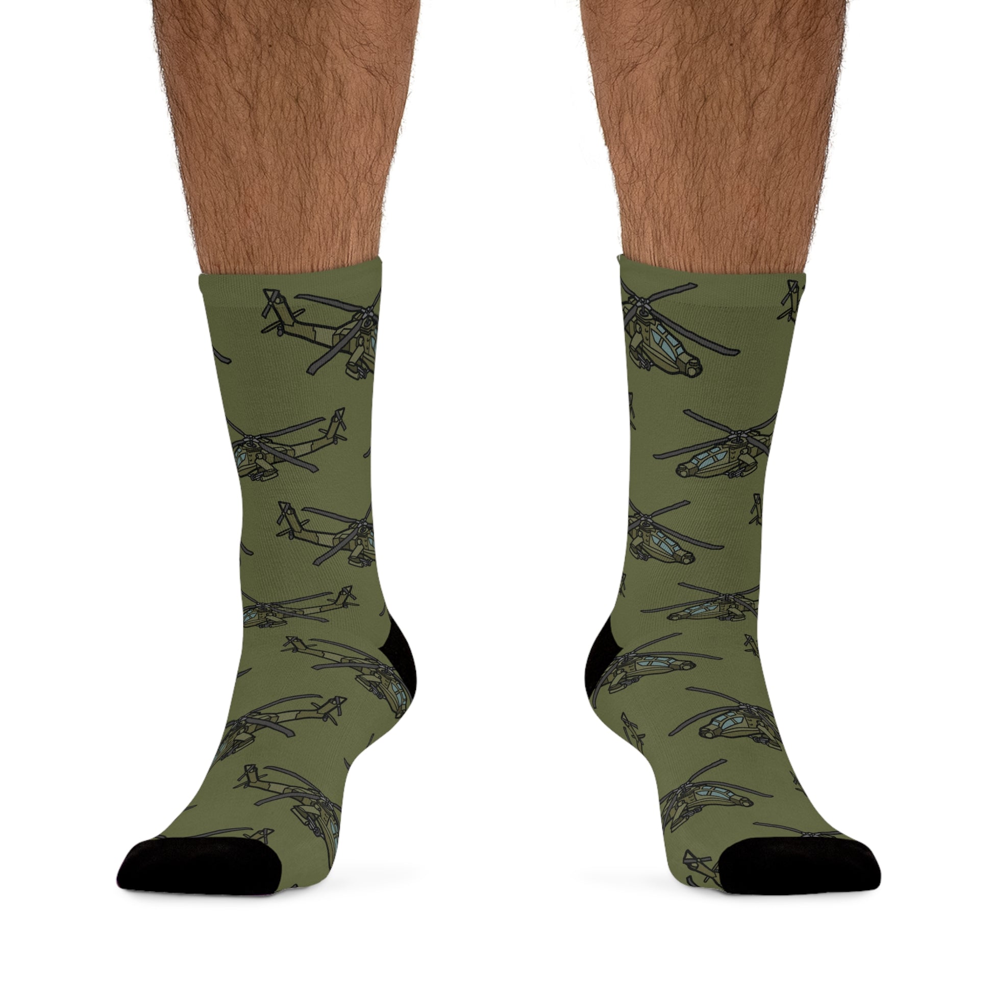 Green Apache Helicopter Polyester Socks - Eco-Friendly Aviation Gift