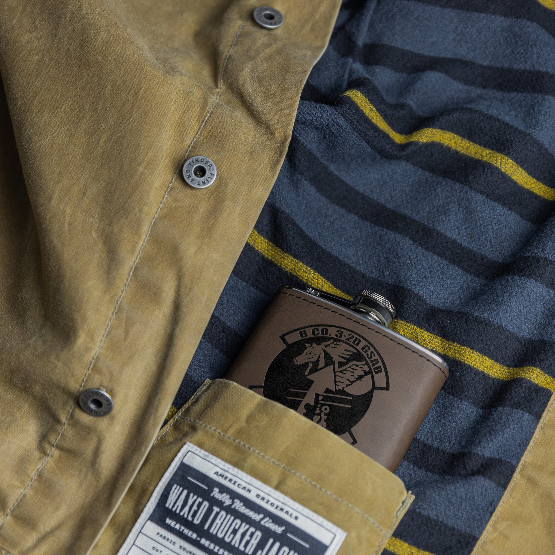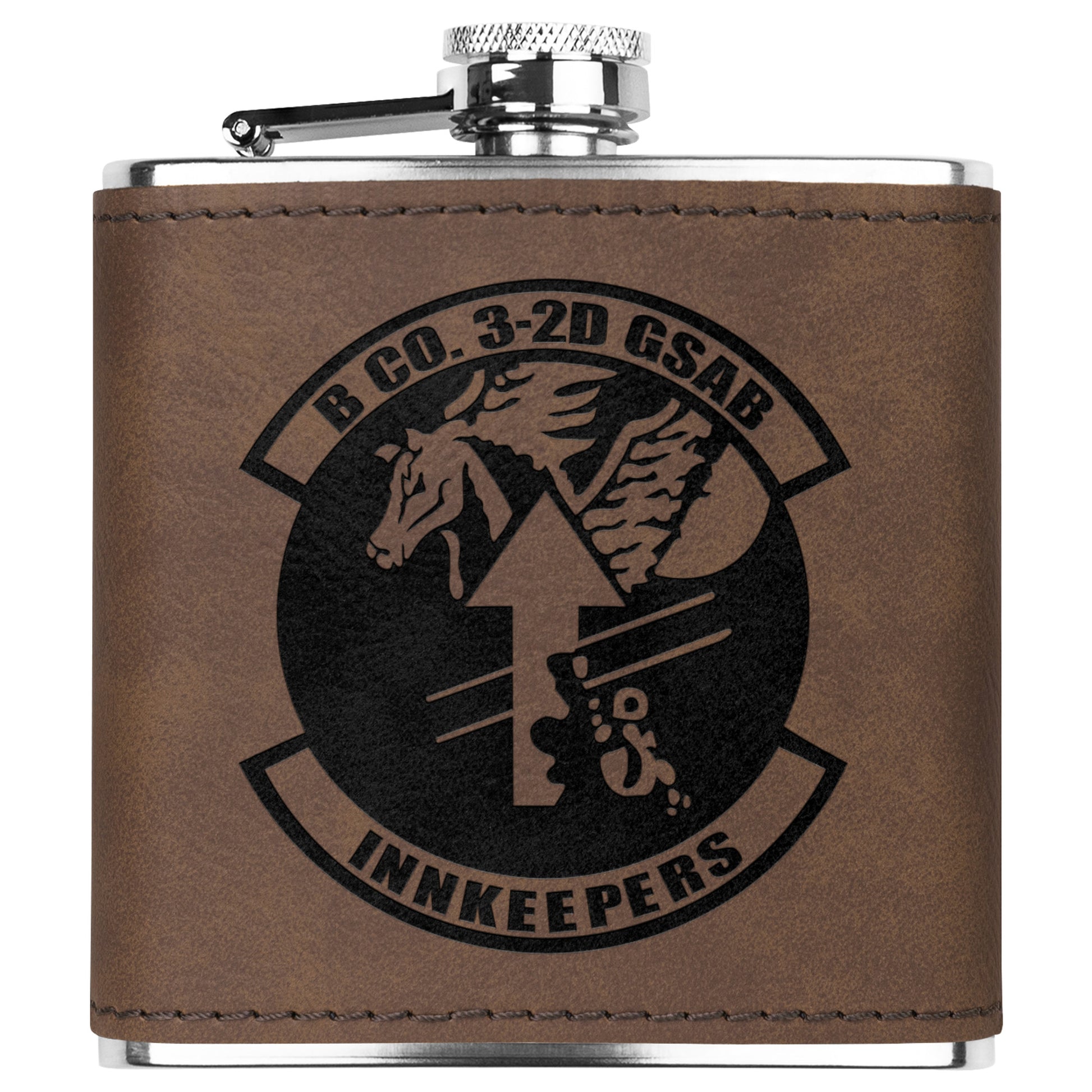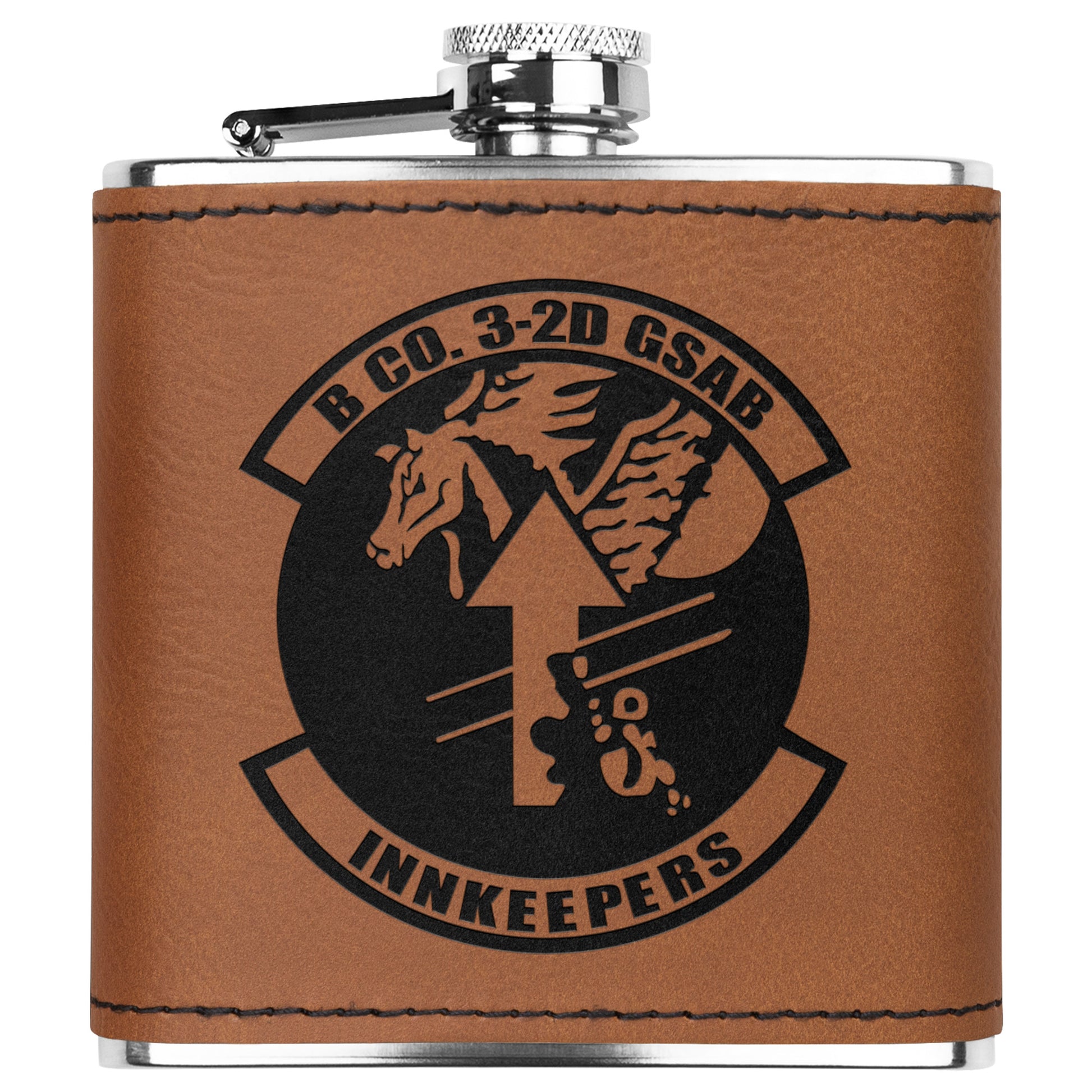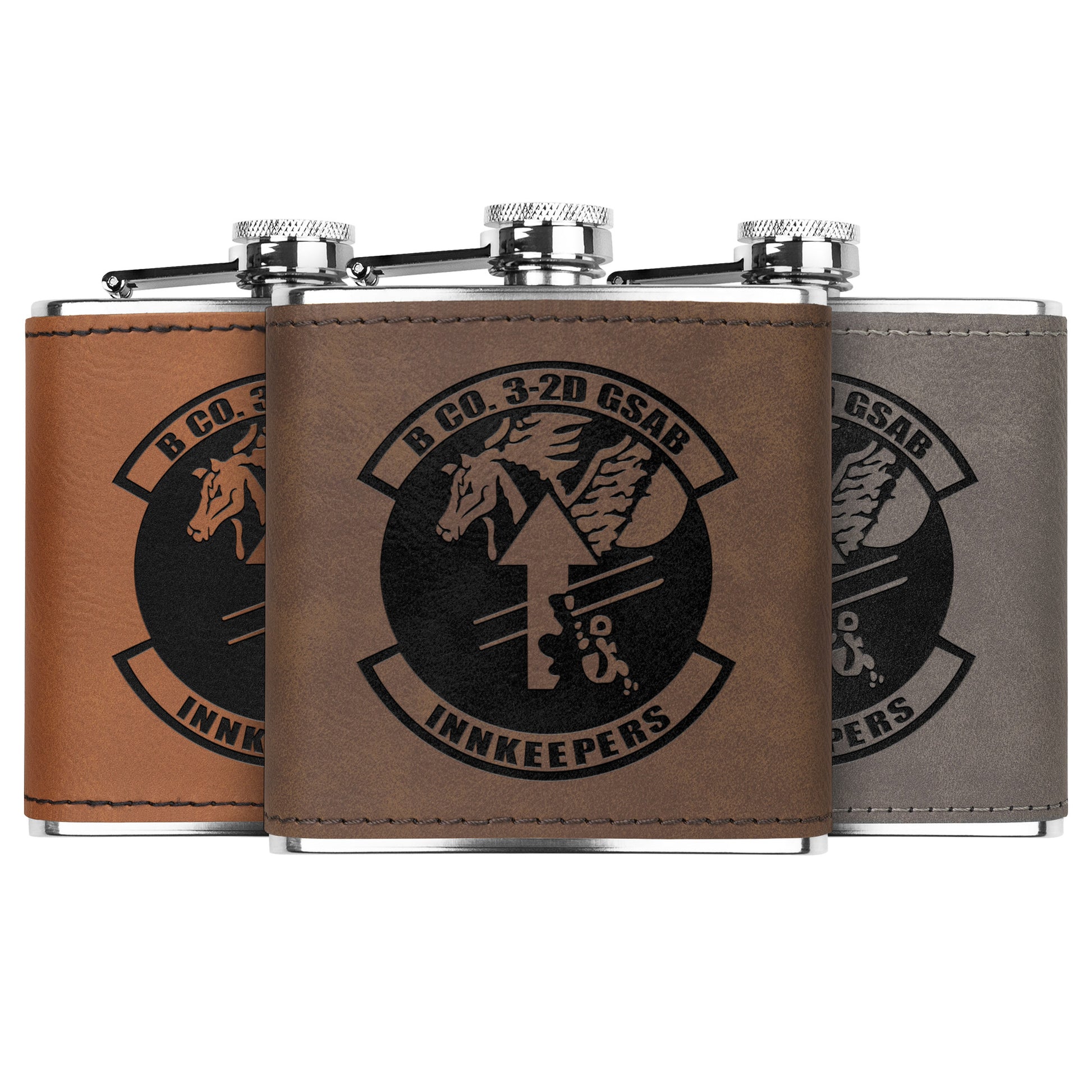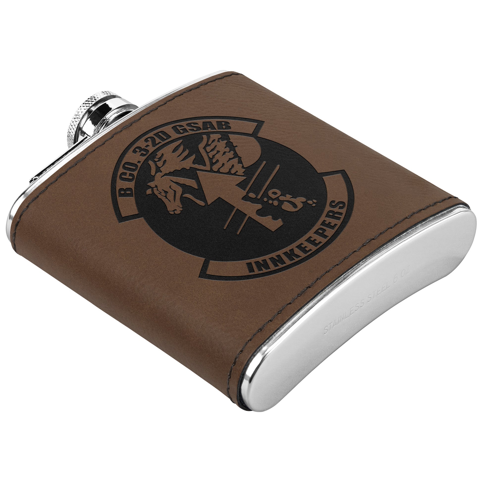 Imagine having this cool flask by your side - it's like carrying a tiny sidekick for your favorite drinks! This flask is super portable, fitting easily in your pocket at just 6 ounces. It's made from top-notch stainless steel to keep your drinks fresh, and it's wrapped in a handsome leather cover that's as comfy to hold as it is stylish. You can pick from three different colors to match your vibe: rawhide, gray, or dark brown. Plus, it has a laser engraved design that looks super sharp.